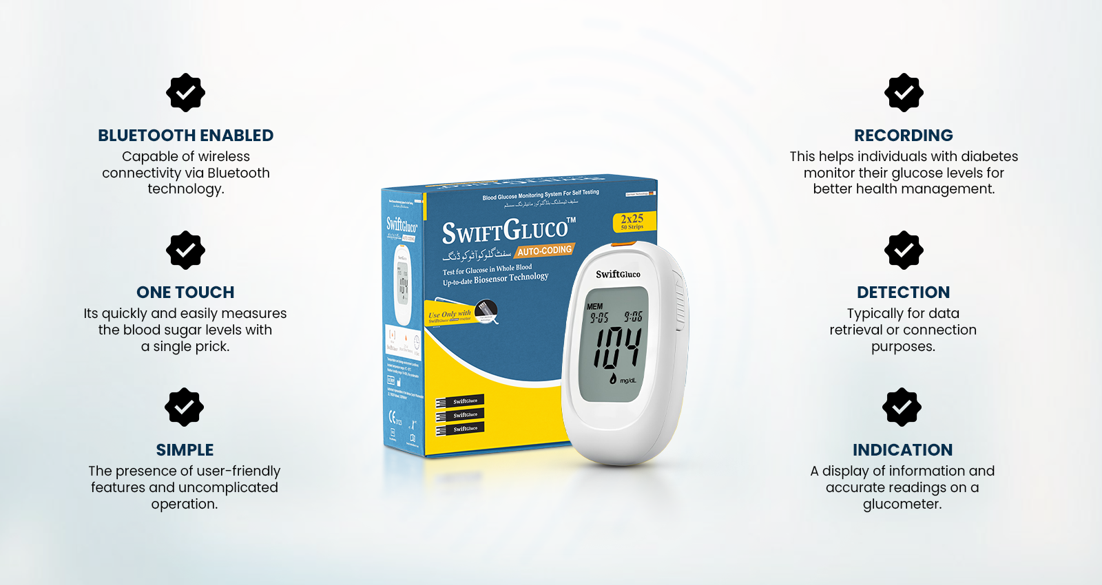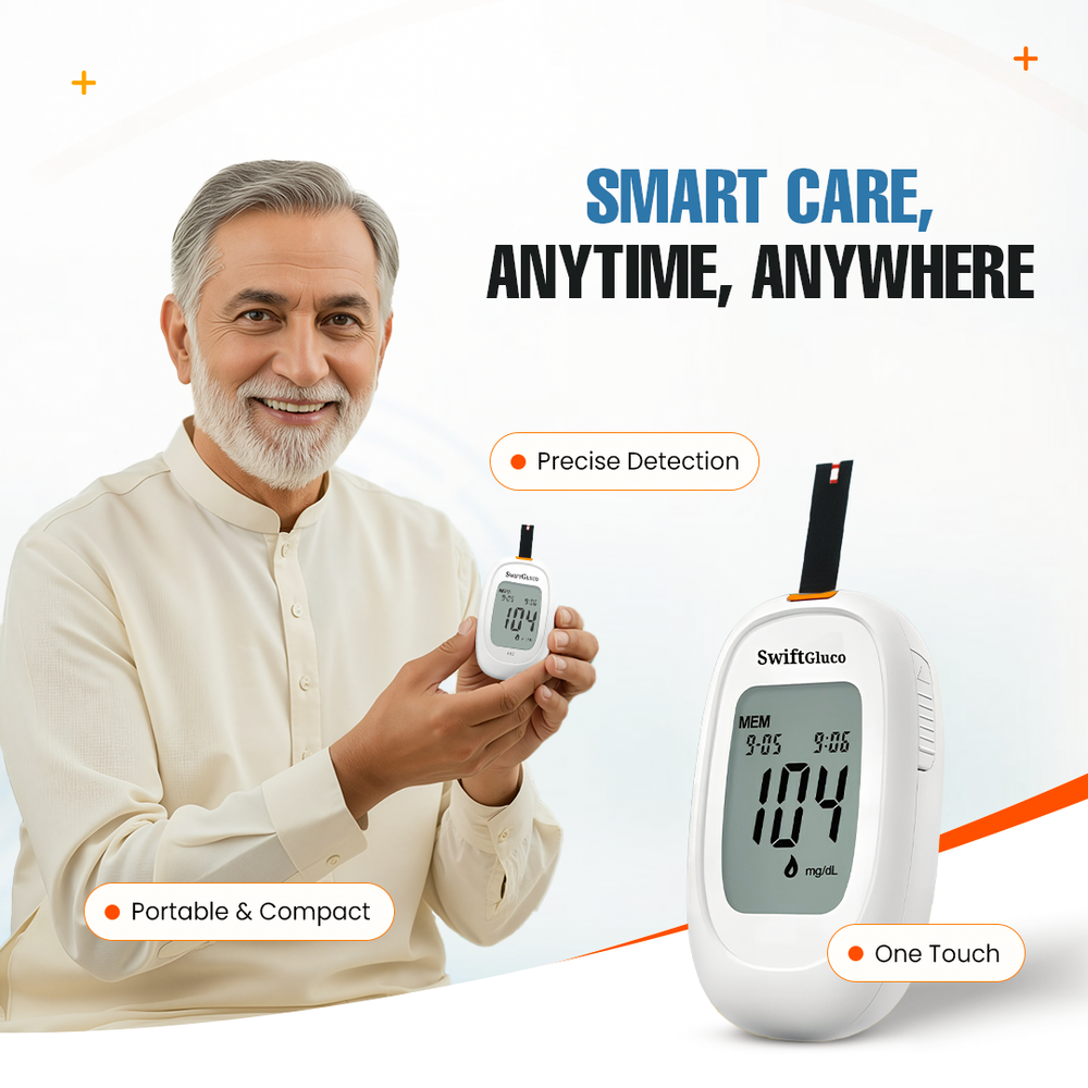 Swift Gluco is the smart choice for anyone who wants fast, accurate, and hassle-free sugar monitoring. Unlike traditional devices, Swift Gluco combines precision with simplicity — giving you instant results in just a few seconds. Its sleek, portable design makes it easy to carry anywhere, while the built-in memory helps you track your sugar levels over time. Trusted for reliability and convenience, Swift Gluco empowers you to stay in control of your health every day.